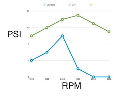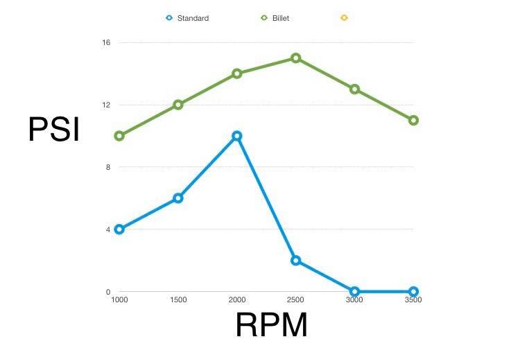 The standard style pumps suffer quite badly from cavitation through the whole rev range to the point where at higher rpm the flow drops almost to nothing. This causes localised overheating leading to micro boiling and hot spots in your engine and can eventually lead to a damaged timing cover or worse, a blown head gasket or cracked cylinder head.